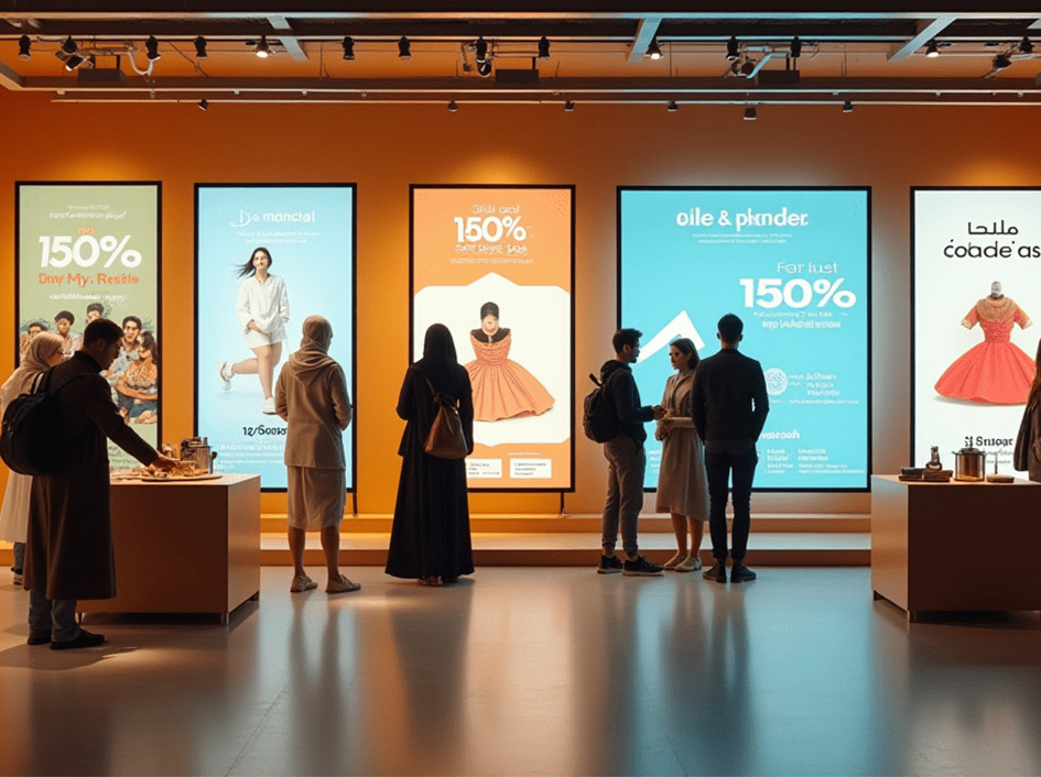 اجذب المتسوقين من خلال شاشات رقمية تفاعلية تعرض أحدث التشكيلات والعروض الترويجية. استمتع بتجربة غامرة تعزز التفاعل وتزيد من المبيعات