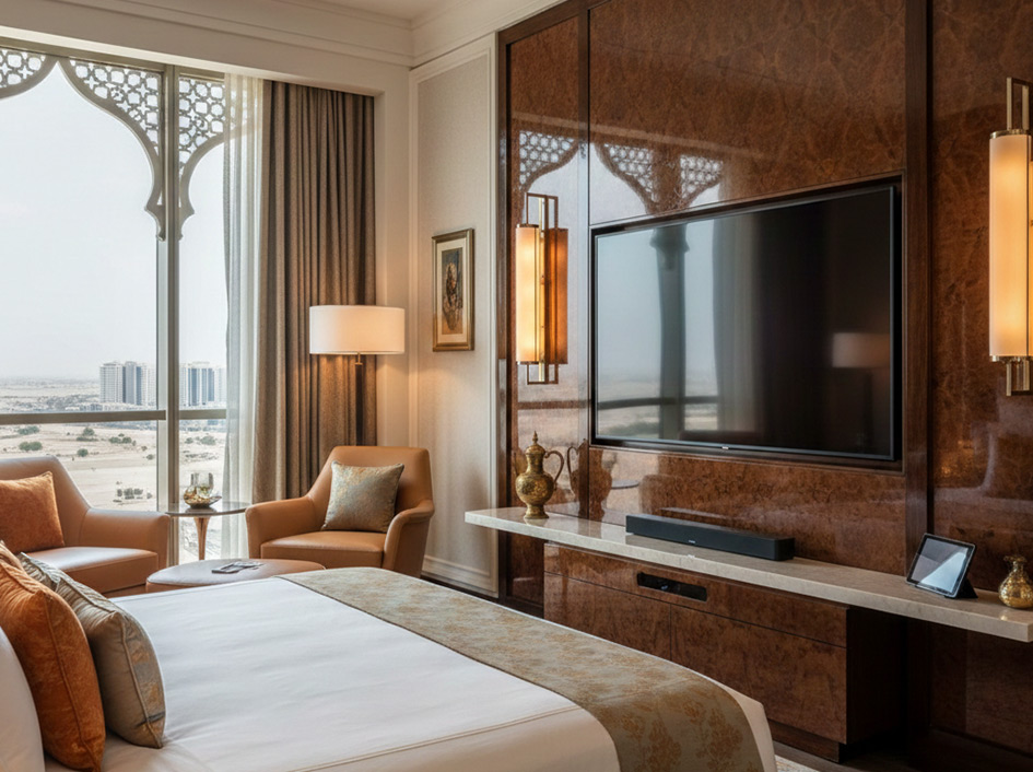 Yes, FAMA provides customized IPTV solutions for hotels in Saudi Arabia, UAE, and beyond, offering on-demand content, multilingual channels, and room integration features like lighting and temperature control.