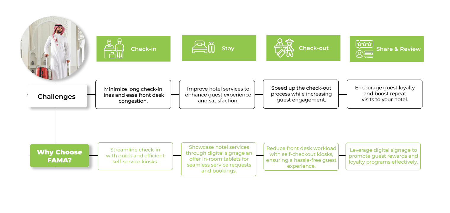 قم بتبسيط عمليات تسجيل الوصول والمغادرة، وتقليل أوقات الانتظار، وتعزيز رضا الضيوف من خلال أجهزة الخدمة الذاتية—مما يوفر خدمة سلسة دون الحاجة إلى موظفين إضافيين.